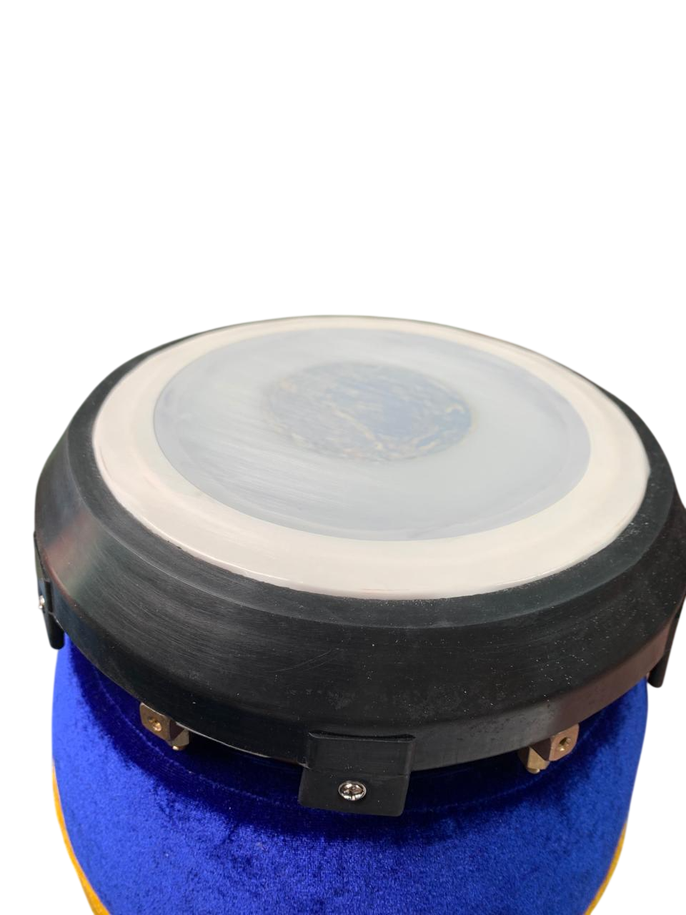 A Bigger-side Heads for the left side of Madhura Mridanga. The heads are made of Polyester films which are synthetic. They are, therefore, 100% ahimsa and does NOT contain any leather product.